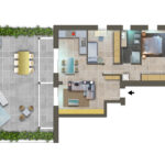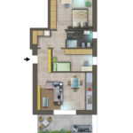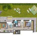Appartamento trilocale di 114mq, con due camere e giardino