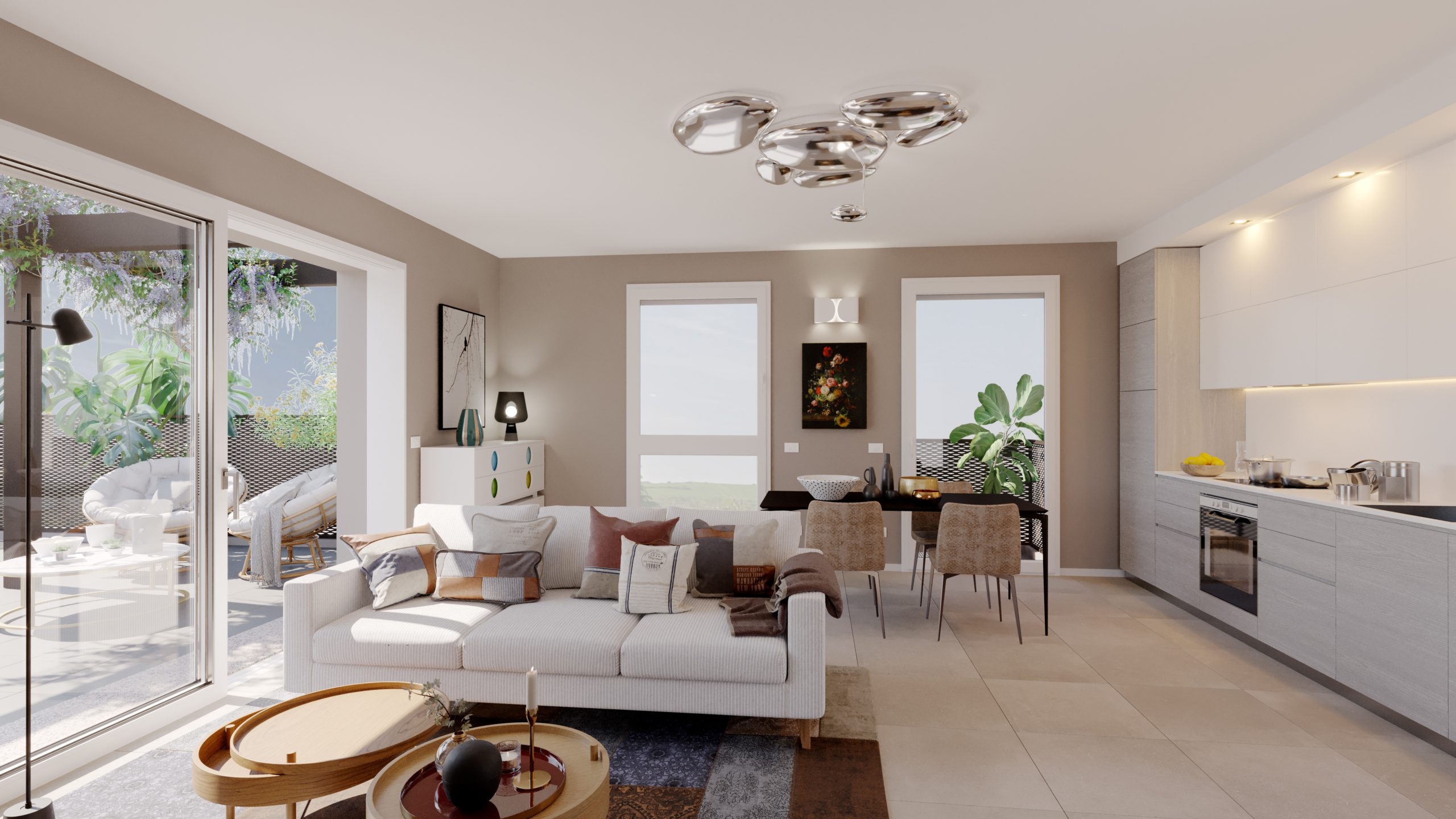 Ogni appartamento gode di uno spazio esterno quale giardino o ampio terrazzo, entrambi ideali per allestire uno splendido outdoor living.