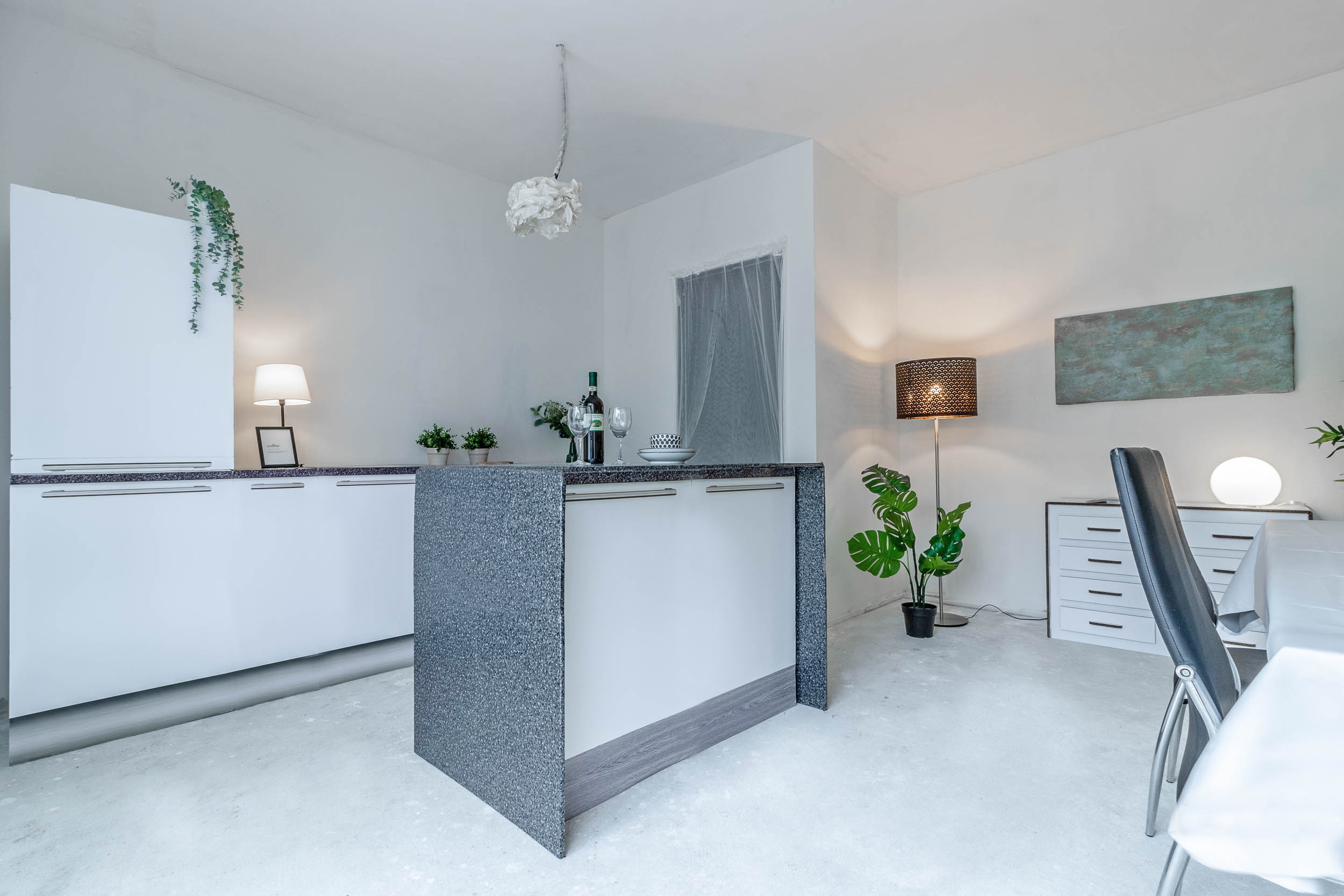 La disposizione su due livelli dell’immobile offre una ottimale suddivisione degli spazi. Al piano terra, è presente una luminosa zona living e una cucina separata abitabile, oltre a un bagno che aggiunge praticità.