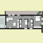 Appartamento trilocale al piano terzo con terrazzo spazioso. Zona notte composta da una camera doppia e una camera matrimoniale, due bagni entrambi con finestra, di cui uno dedicato alla camera matrimoniale. La zona giorno con angolo cottura e con ampia vetrata verso la parte esterna dalla casa.