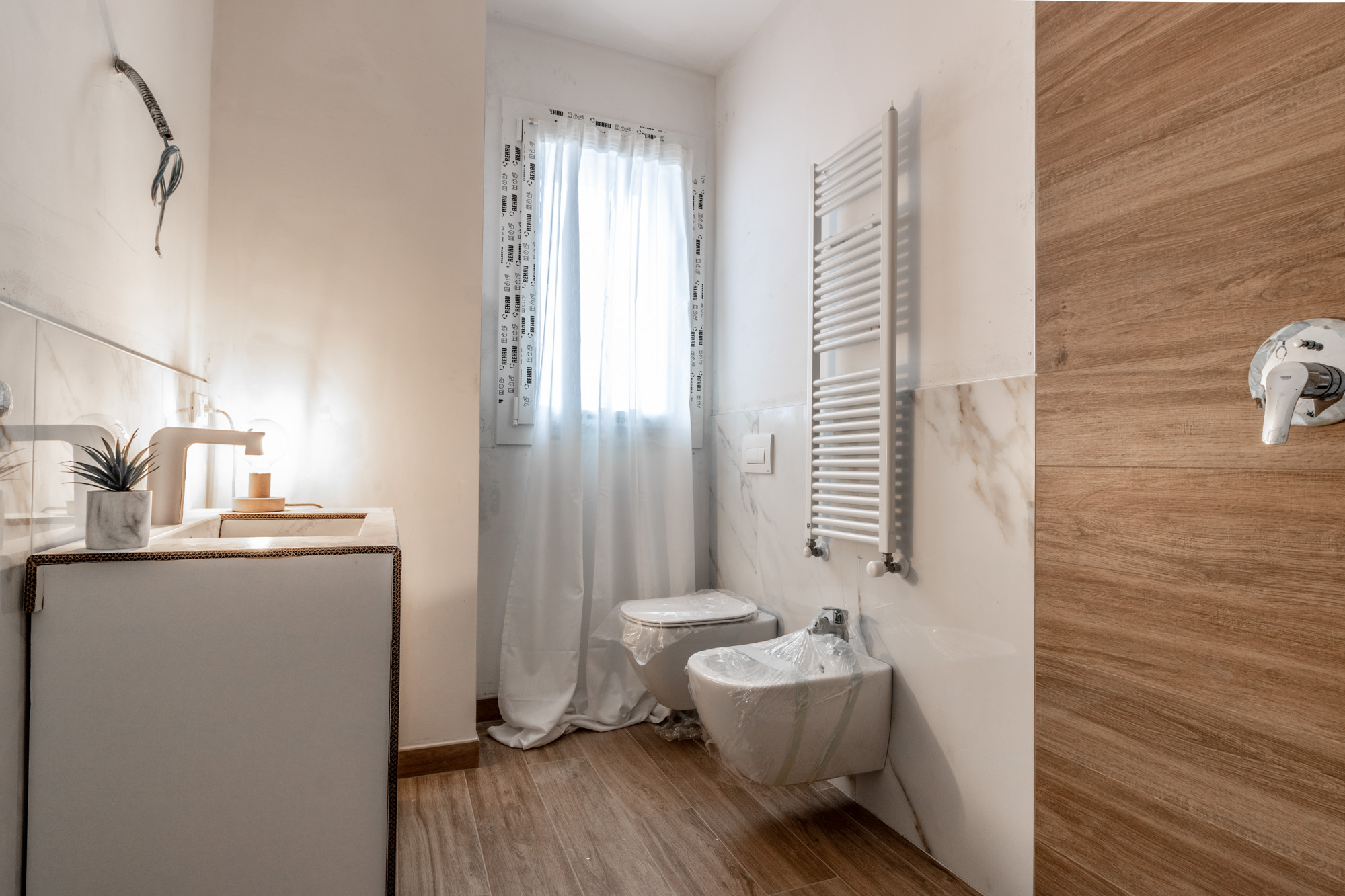 L’attico è dotato di due bagni finestrati, con ogni dettaglio studiato per garantire comfort e funzionalità.
