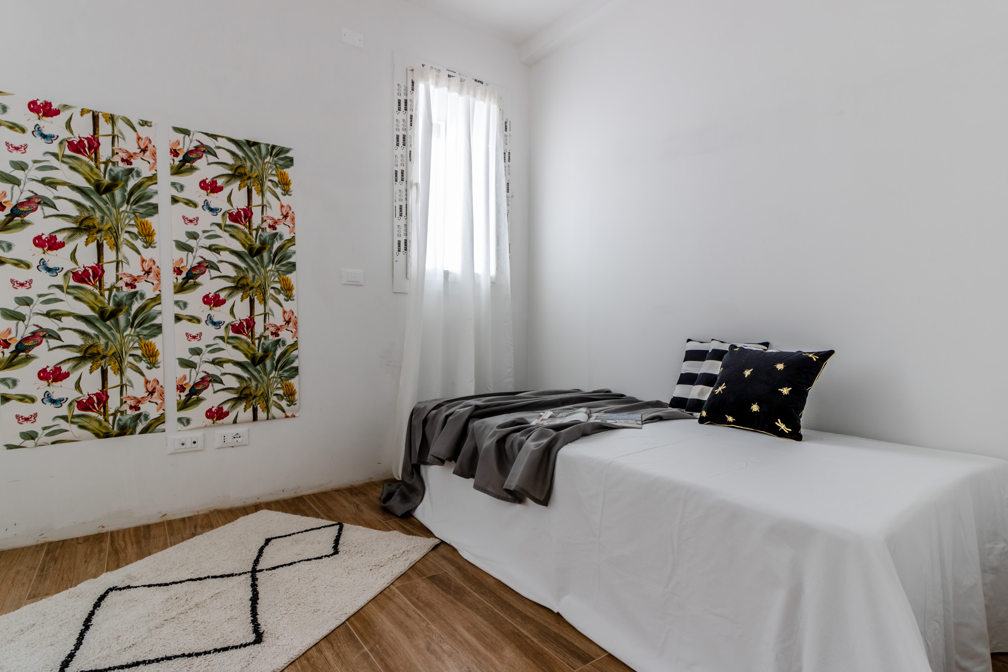 La zona notte include una camera matrimoniale con cabina armadio e due camere singole, creando spazi intimi e accoglienti, ideali per il relax e per lo Smart Working.